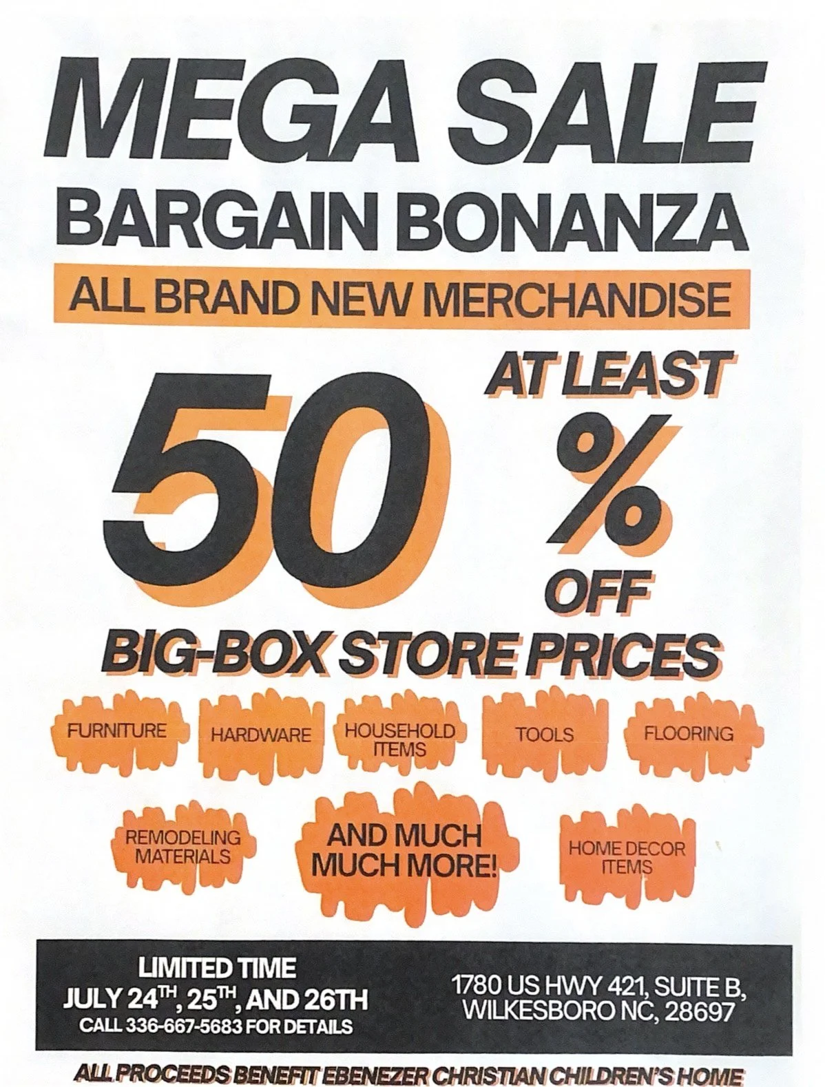 Come Shop & Save BIG at our Mega Sale Bargain Bonanza!